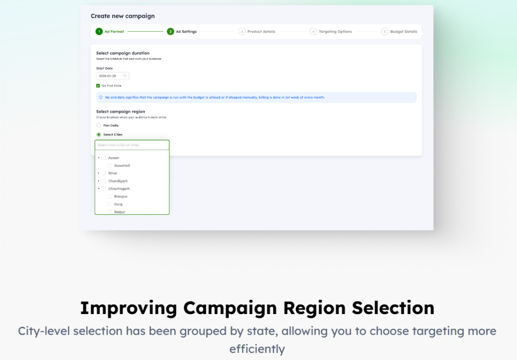City-level targeting is now grouped into state-level selection, simplifying campaign setup and scaling.