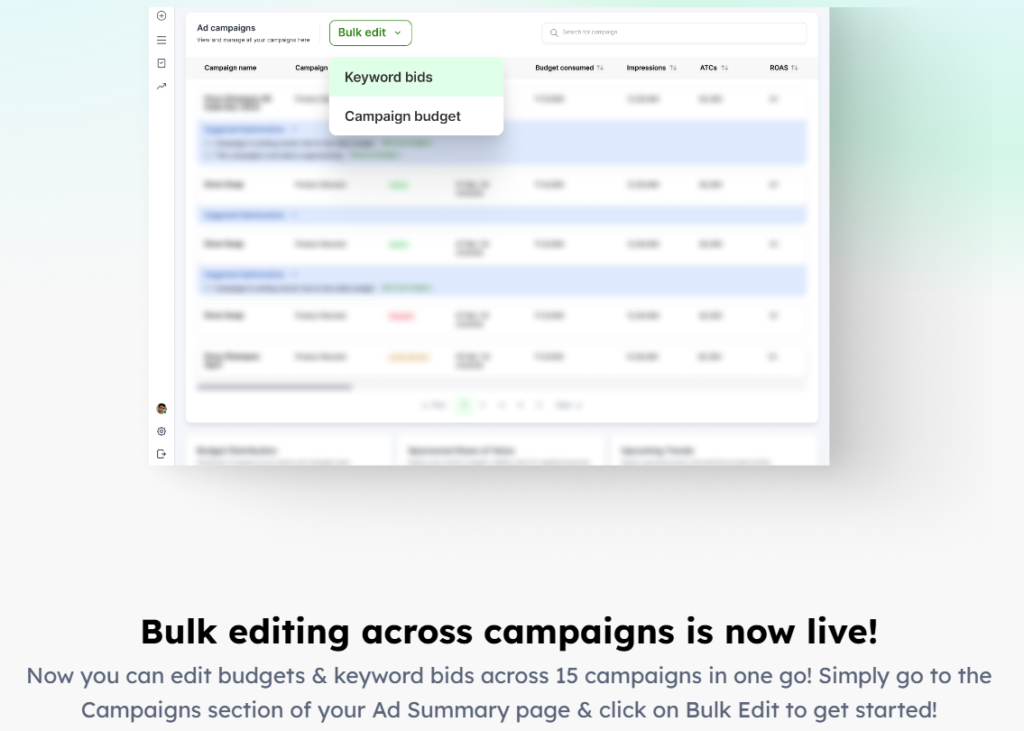 You can now edit budgets and keyword bids across up to 15 campaigns at once, saving significant time and effort.
