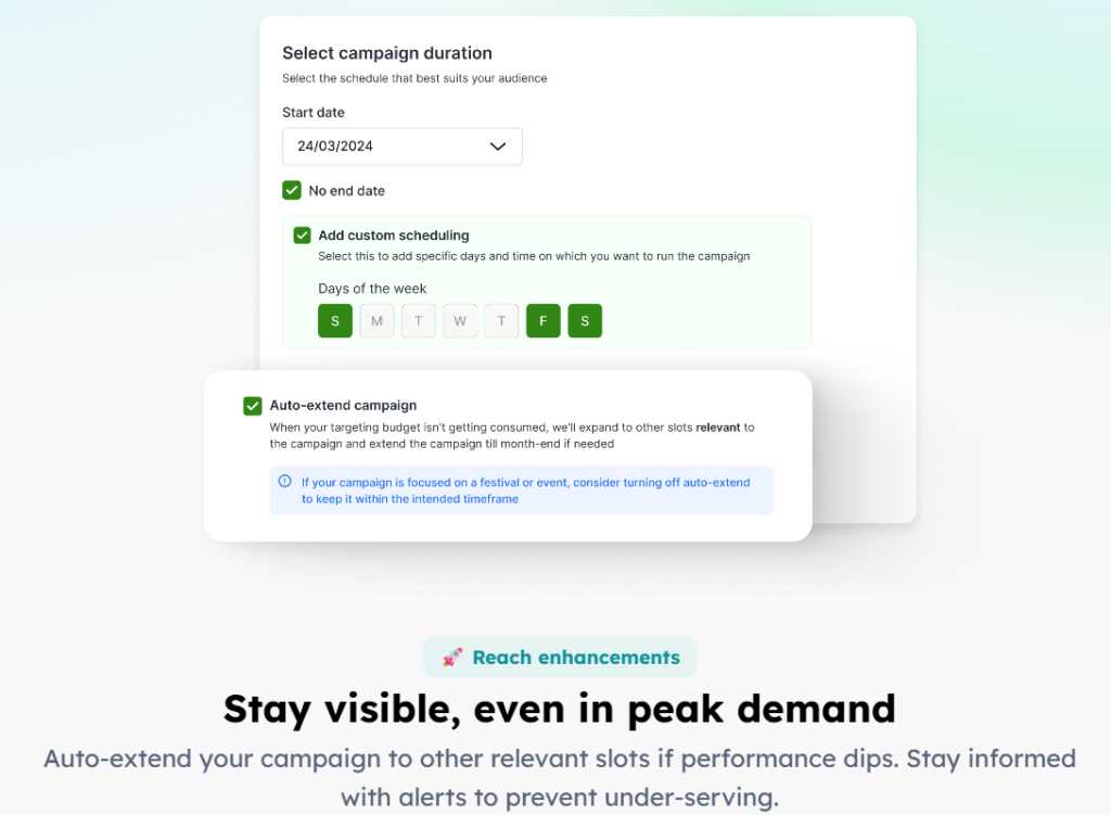 Campaigns can now automatically extend into better-performing slots, ensuring consistent visibility.