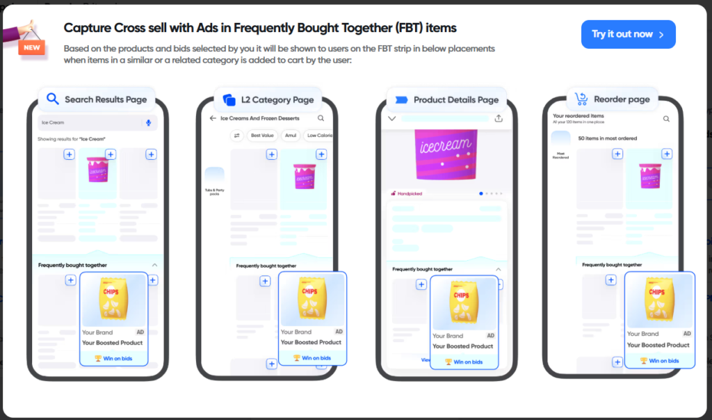 FBT ads are particularly powerful because they target users at a high-intent stage of the purchase funnel. Instead of relying only on search visibility, brands can now influence the basket-building phase.